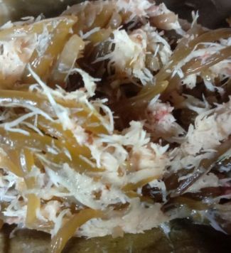 Perendaman dilakukan menggunakan air beras maksimal satu hari. Fungsinya agar rumput laut tidak memiliki bau tak sedap dan warnanya lebih putih dan bersih.